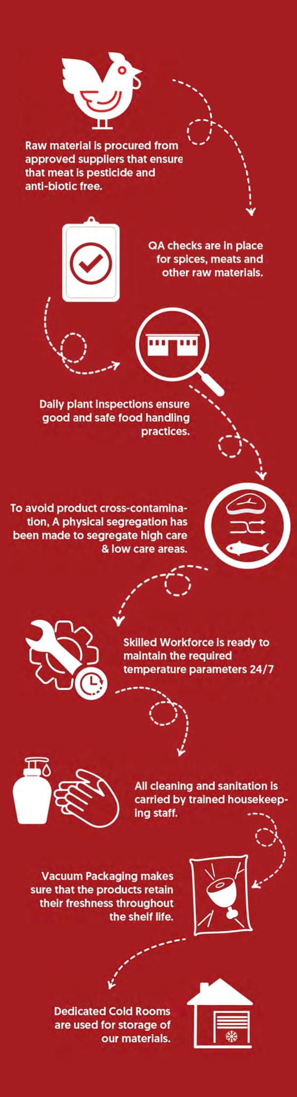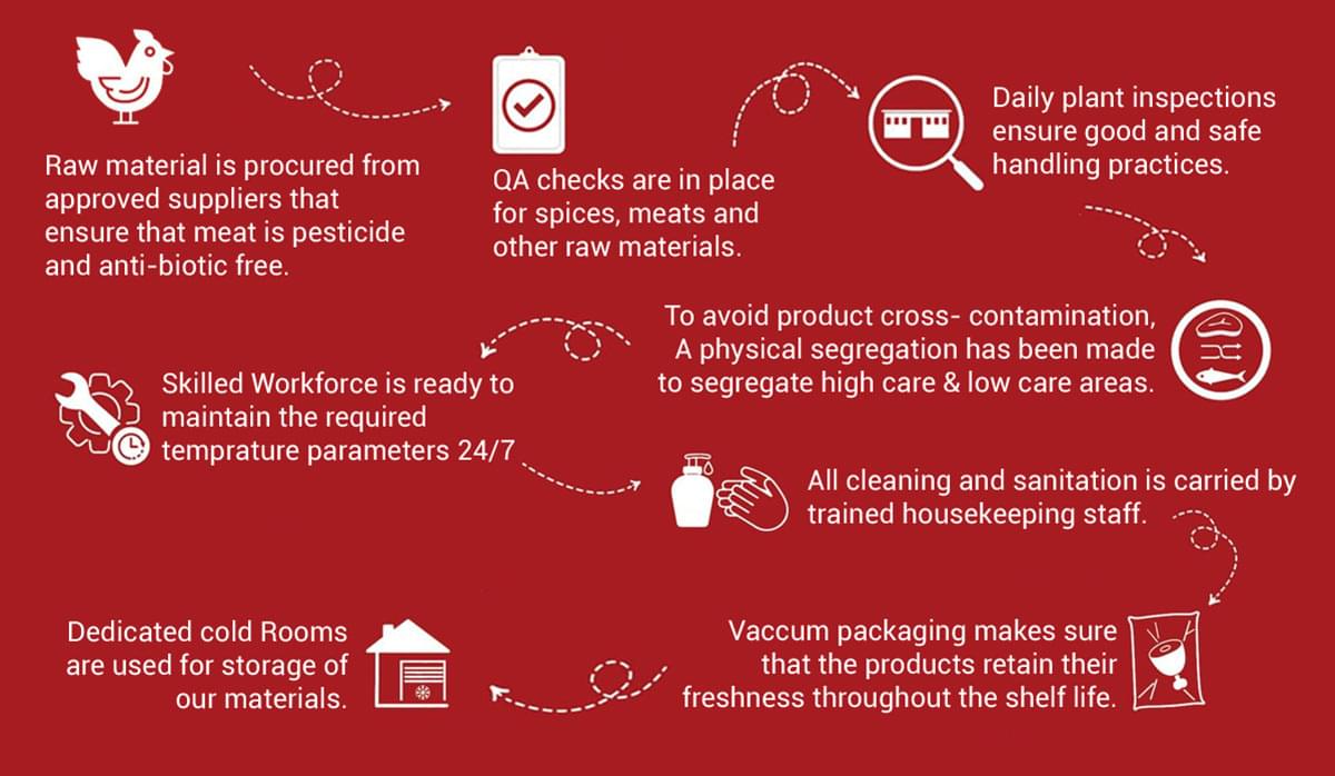 We constantly emphasize on improving quality standards of our products by maintaining stringent checks on the manufacturing procedures and raw material sourcing. With regular internal & external Quality Checks and Critical Control Control points in place, we make sure that all our products meet global food safety standards.